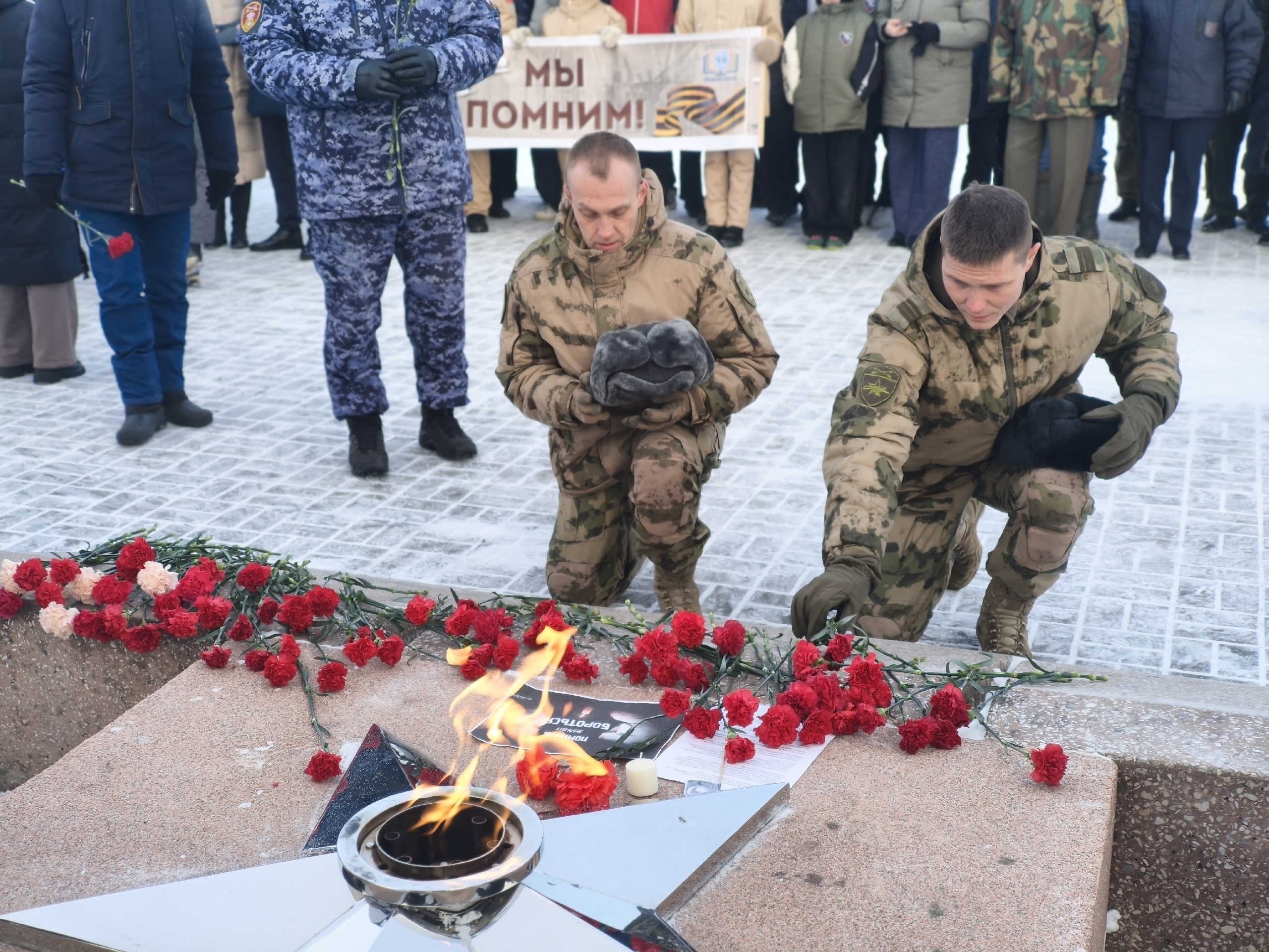 В памятном мероприятии приняли участие Глава города Дмитрий Чернятин и заместитель председателя Совета депутатов, официальный представитель «Союза ветеранов СВО» в Железногорске Сергей Бурцев, депутаты Ирина Кузоро и Светлана Телешун, начальник ФГКУ «Специальное управление ФПС № 2 МЧС России» Владимир Дерышев, руководитель «Управление культуры» Жанна Хмелева, представители воинских частей города и силовых ведомств, юнармейцы и школьники, курсанты академии МЧС и неравнодушные железногорцы. «872 дня жители Ленинграда не только боролись, но и создавали военную технику, работали и верили, что Победа будет за нами. Более четырнадцати европейских стран принимали тогда участие в оккупации и блокаде Ленинграда и до сих пор стараются сделать тоже самое, а наши ребята не дают им такой возможности. Наш святой долг — помнить, знать и чтить», — сказал Сергей Бурцев. В Железногорске осталось мало свидетелей тех событий. В память о жертвах того времени прошла минута молчания и возложили цветы к Вечному огню у Монумента Победы.