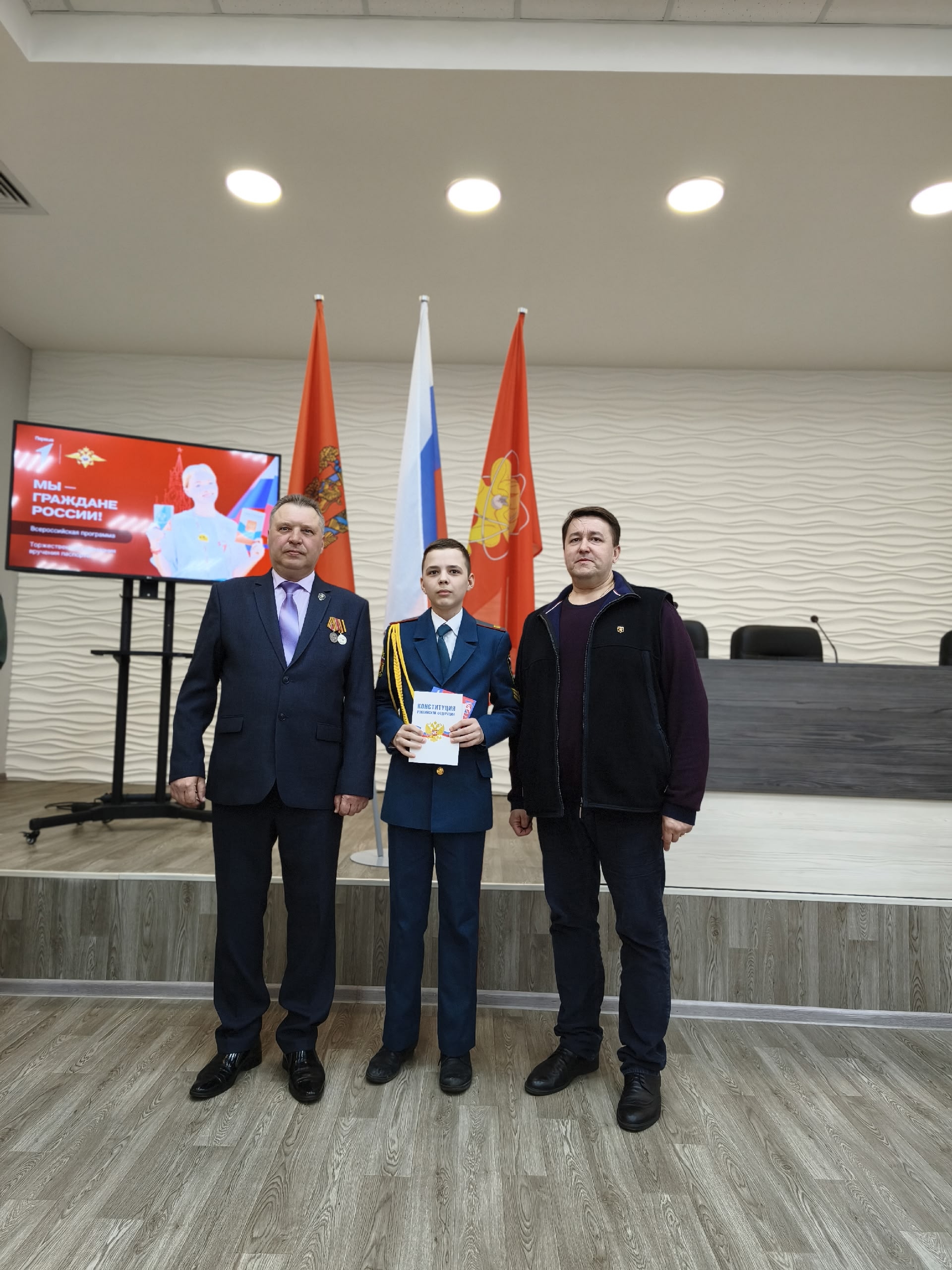 Торжественная церемония организована в рамках всероссийской программы «Мы — граждане России» общероссийского движения детей и молодежи «Движение Первых». Ребята получили первые главные документы из рук заместителя председателя Совета депутатов ЗАТО Железногорск Сергея Бурцева и заместителя главы города по общественно-политической работе Дмитрия Протопопова.