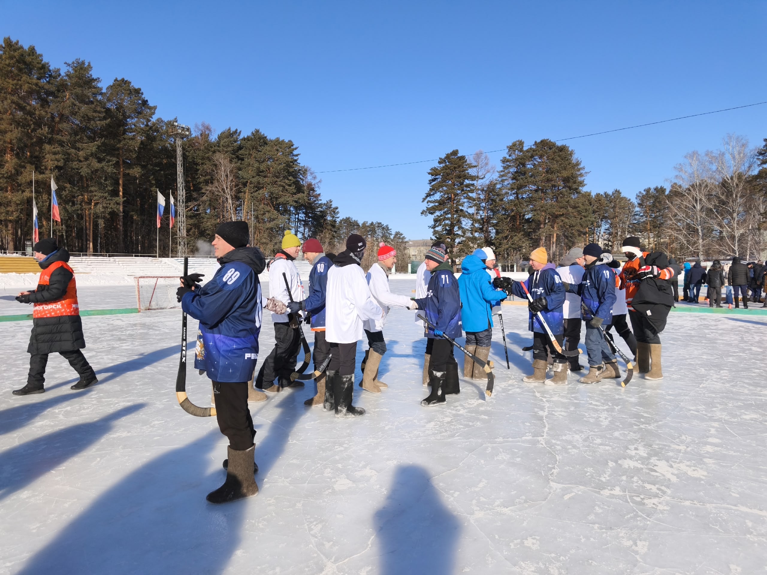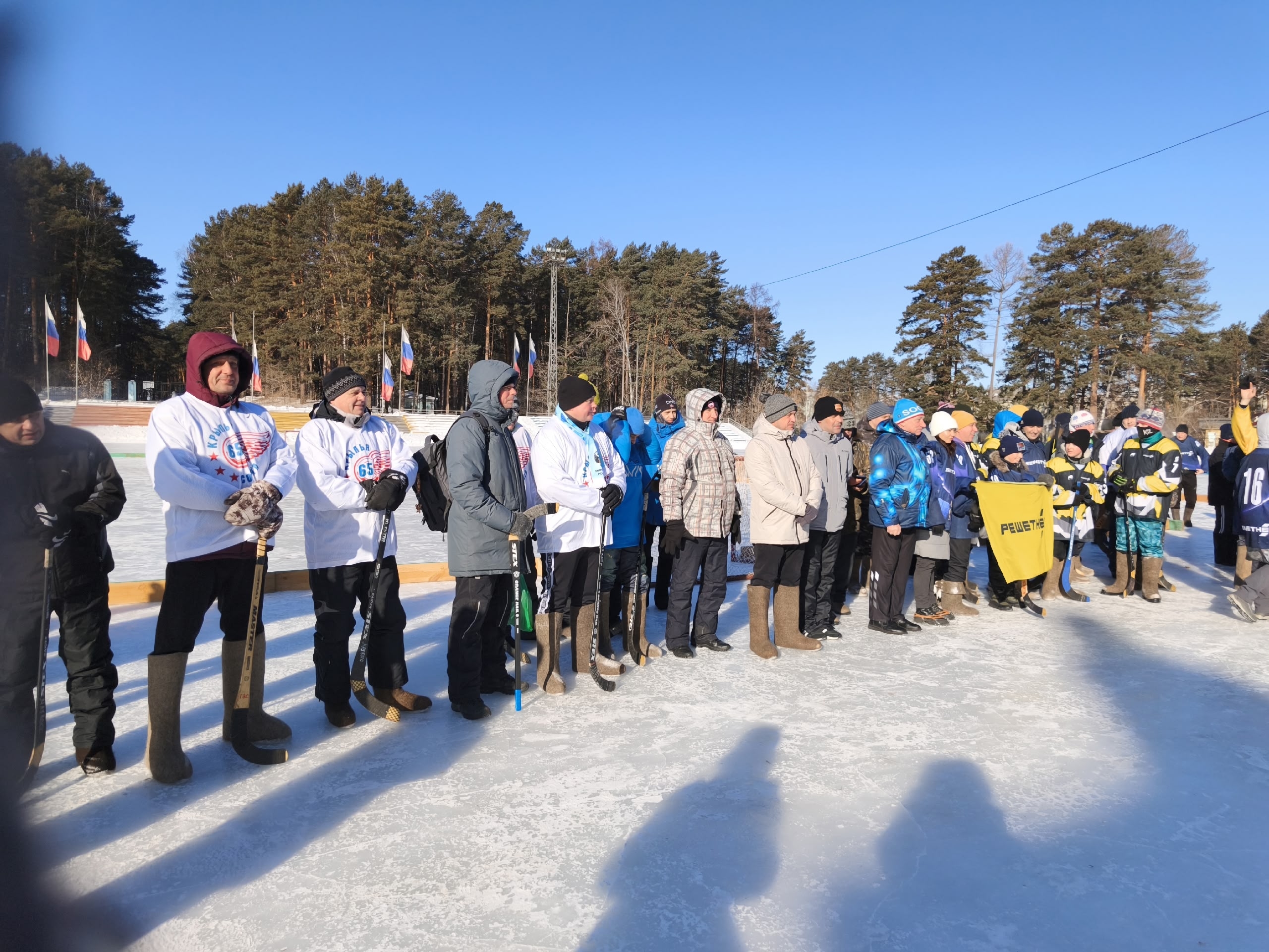 На льду стадиона «Труд» развернулись яркие состязания хоккейного турнира в валенках, посвящённые празднованию Дня защитника Отечества. Соревнования собрали шестнадцать команд-участниц, представляющих предприятия, учреждения и организации города.